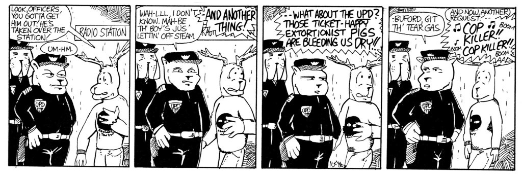 Way back in the hazy hipster 1990s I somehow thought it would be a good idea to do a comic strip for The Daily Mississippian newspaper I worked at part-time. JIP was a combination of elements of Bloom County, Doonesbury and Martin Wagner’s Hepcats all thrown in a blender and mixed up to make a satire of college life. It was a terrific fun time for me, even if decades later I don’t know how I found the energy to do a daily strip, work part-time at the paper, work another part-time job, put out a regular small press comic, attempt to have a social life, and, oh yeah, finish my college degrees.