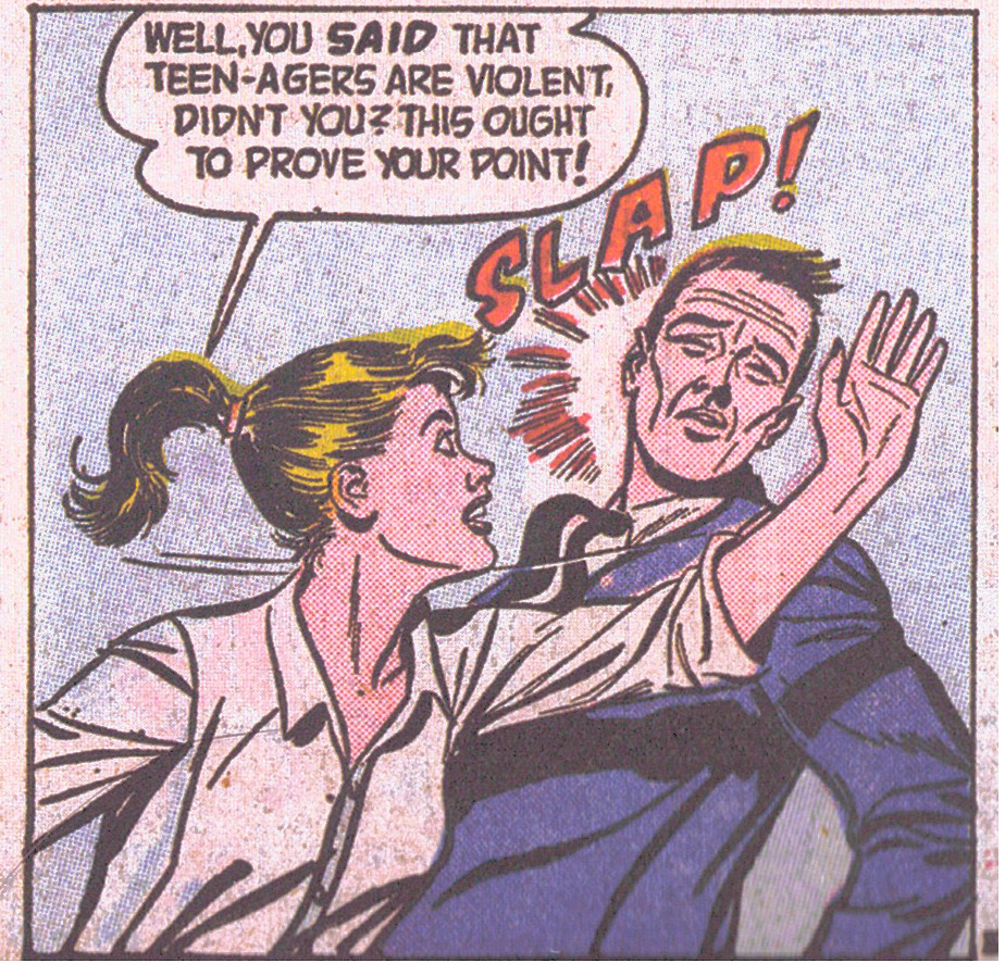 A lot of the romance comics were just dire, cookie-cutter dramas. But for me, many of the most enjoyable romance comics are the ones where women take their own agency and slap back at the stereotypes. I admit to being particularly partial for the romance comics of the swingin’ 70s, where feminists, hippies and biker dudes sit a bit uneasily with the traditional tropes of the genre.