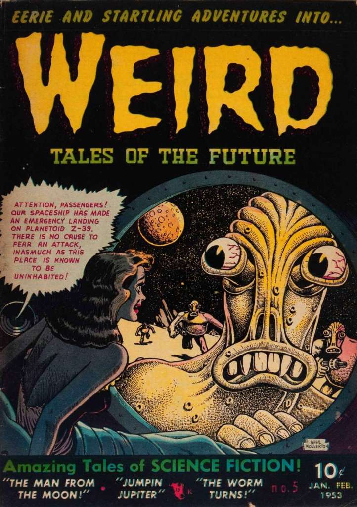 Horror comics were overflowing from the newsstands in the ‘50s but Wolverton’s works in the genre still have an in-your-face freaky quality that makes them stand out. On his covers for Weird Tales of the Future, boldly drawn monsters leap off the page with an intimate menace – if I was a kid reading these in 1953, I’d have had nightmares for years. The especially terrifying “Brain Bats of Venus” haunted entire generations of comic readers back then, I imagine.