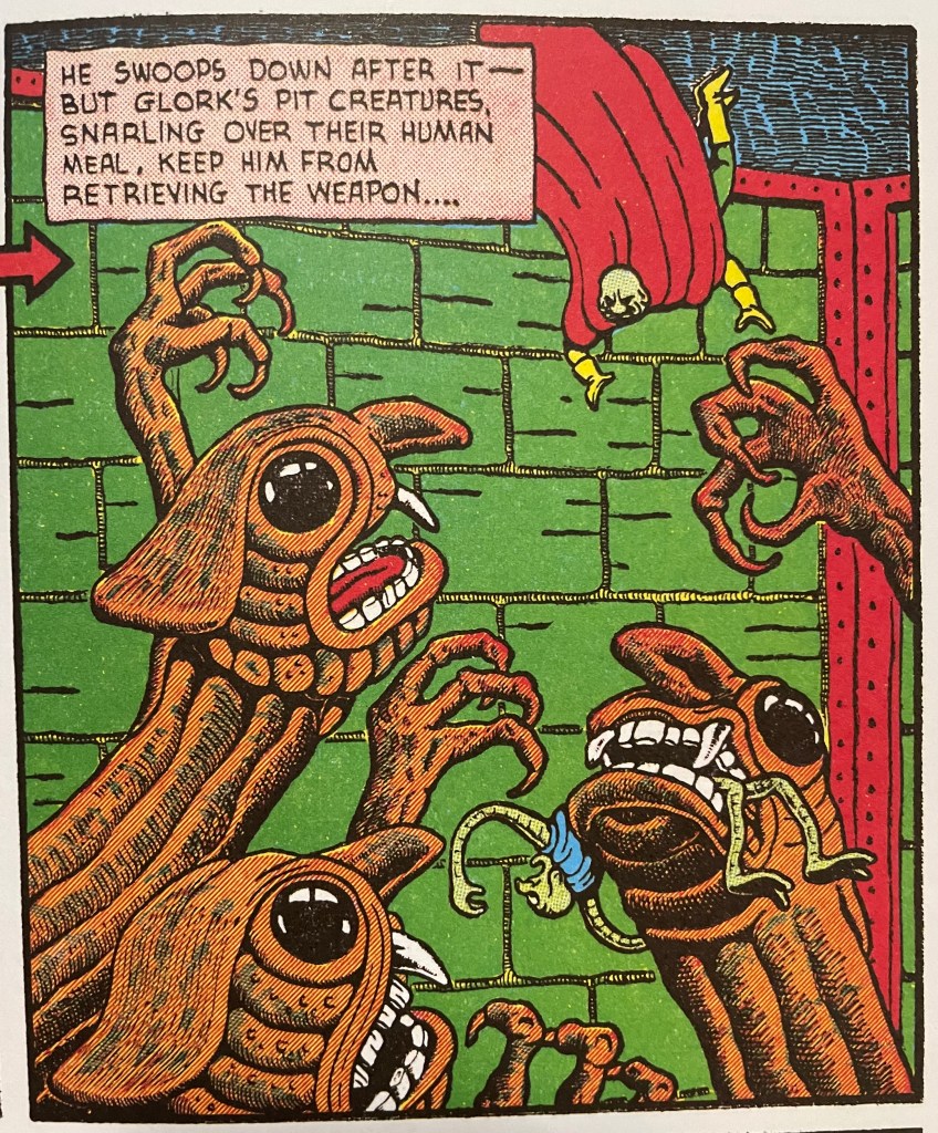 He was never “typical.” Even his earliest work like the Buck Rogers-esque Spacehawk felt like outsider art. On the surface they’re pretty standard 1940s spaceman adventures, but there’s a visceral weight to the drawings that makes them feel truly alien. A lot of golden age comics were hastily drawn, rough work, but Spacehawk still shines with its gruff leading man facing a never-ending horde of endlessly imaginative, goopy monsters.
