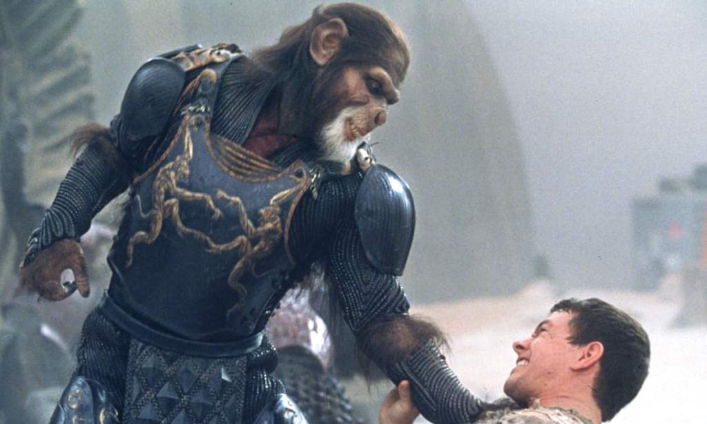 9. Planet of the Apes (2001) – Tim Burton’s oh-so-millennial reboot showed that you should never try and just remake the original POTA (which, I hope, the current series isn’t working its way towards doing, either). A wooden Mark Wahlberg stars in a strange sideways version of the original’s astronaut journey. Like many Burton movies it often looks great but the story is a bit of a mess with a legendarily dumb ending. The single best thing about this movie is the excellent makeup for most of the apes, especially sneering Tim Roth. (A freakish design for Helena Bonham Carter, on the other hand, manages to look worse than the female apes did in the 1960s.)
