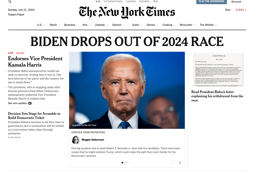 Will Biden hold the course or step aside? The clock is ticking and just over the last week, while I’ve been on a lovely holiday down south, the narrative keeps changing.