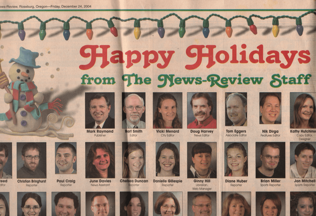 The News-Review was a good ol’ paper, where I worked from 2002 to 2006 as the features editor. We had a great team there – an editor I really looked up to, who offered reliable, smart advice but also welcomed new ideas, encouraged us when we needed it and dressed us down if we (well, me) deserved it. While there was always a lot of coming and going – the average age of most of the 10 or so reporters was probably about 25 – the N-R felt like a “team,” like all good newsrooms do, covering our little corner of rural Oregon down the road from Portland and Eugene. Journos come and go and you sometimes lose touch but I’ve kept up with a surprising number of the team from the News-Review days – they were generally all good sorts.