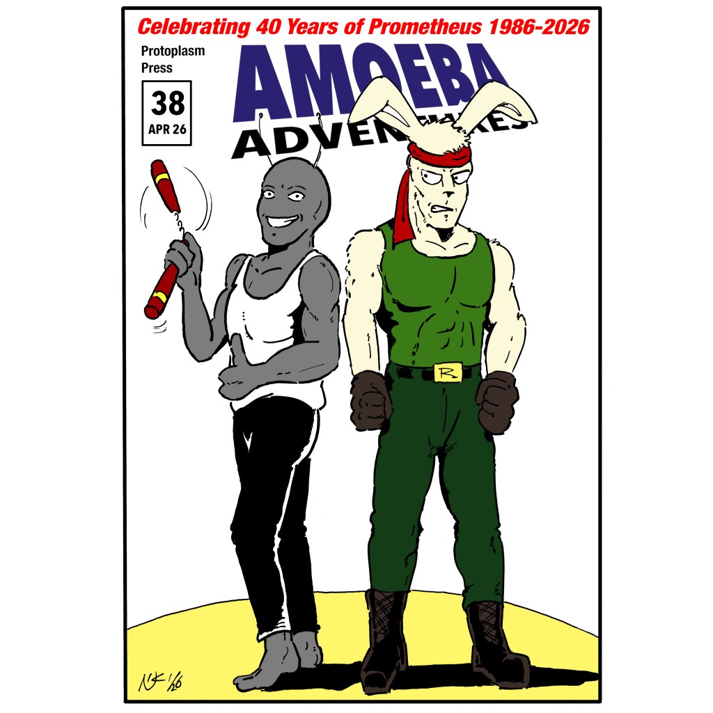 This issue, Ninja Ant has to get a job! But it all goes hilariously wrong when he teams up with our old pal Rambunny to face the unbelievable menace of… well, let’s not spoil everything, shall we? Plus: Prometheus the Protoplasm turns 40 in 2026, here’s a special look back at how it all began!