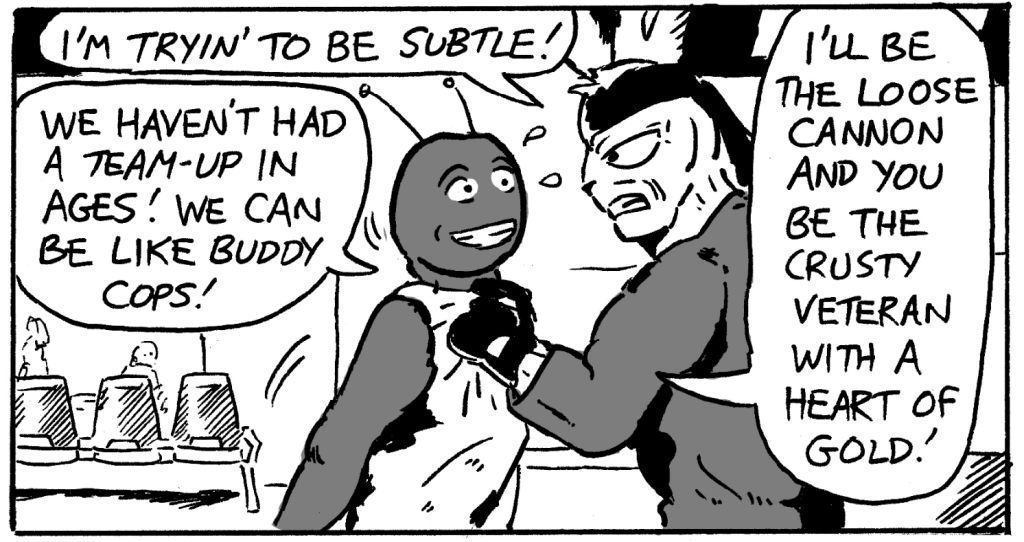 AMOEBA ADVENTURES: THE WARMTH OF THE SUN gathers up the first six all-new issues of Amoeba Adventures beginning in 2020! We pick up Prometheus and friends in their first new tales in years to find them dealing with detective mysteries, deadly former foes, impending parenthood and occasional nights at the disco. Oh, and coffee. There’s always coffee. Collecting Amoeba Adventures #28-33.